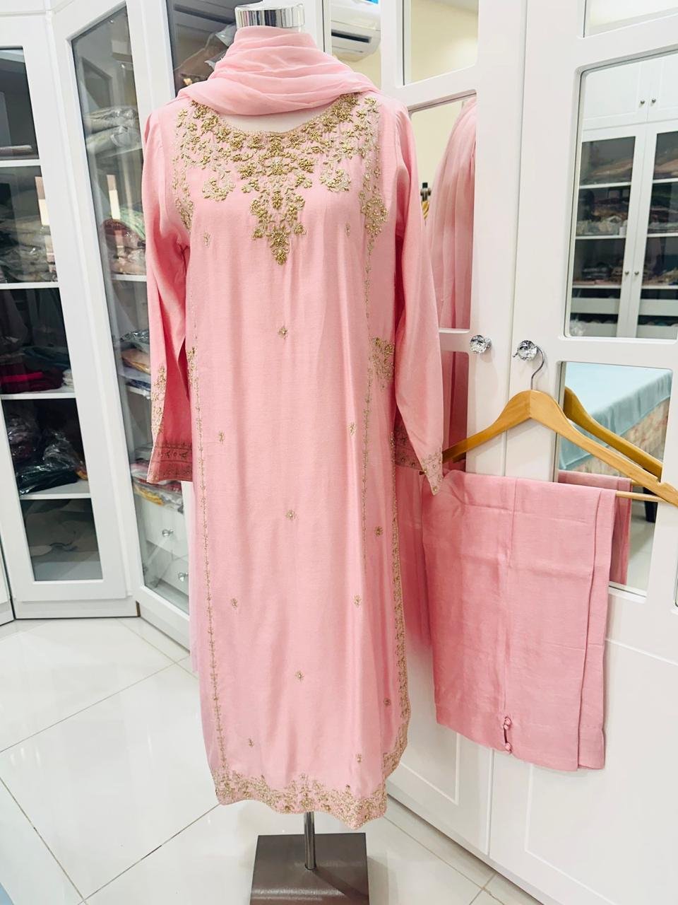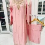 3-PIECE EMBROIDERED COTTON NET STITCHED DRESS
